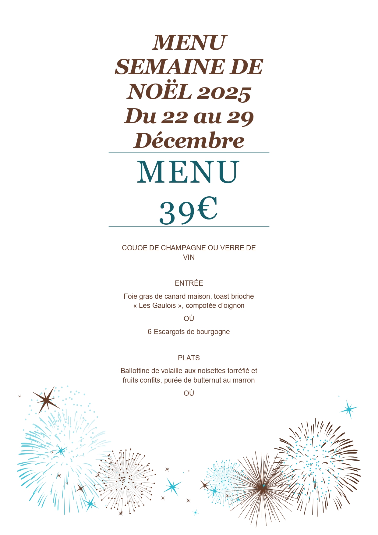 Découvrez notre menu spécial de Noël disponible du 22 au 29 décembre, imaginé pour célébrer les fêtes avec raffinement et gourmandise.